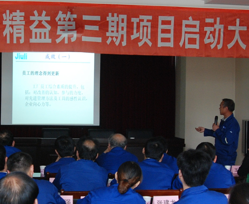 会上,翔宇公司的咨询师王慧丽女士对久立团队就再一次的合作表达了深深的感激之情。她介绍了三期精益改善项目的总体规划:事业部指标管理优化与月度指标评审模式的建立、穿孔厂准时交付和穿孔质量问题改善、现场的可视化管理等。并通过生动的案例和故事分享,鼓励大家虽然精益改善的道路是曲折的,但只要大家的内心是坚毅,学无止境,成长的道路会越走越宽,舞台会越来越大。